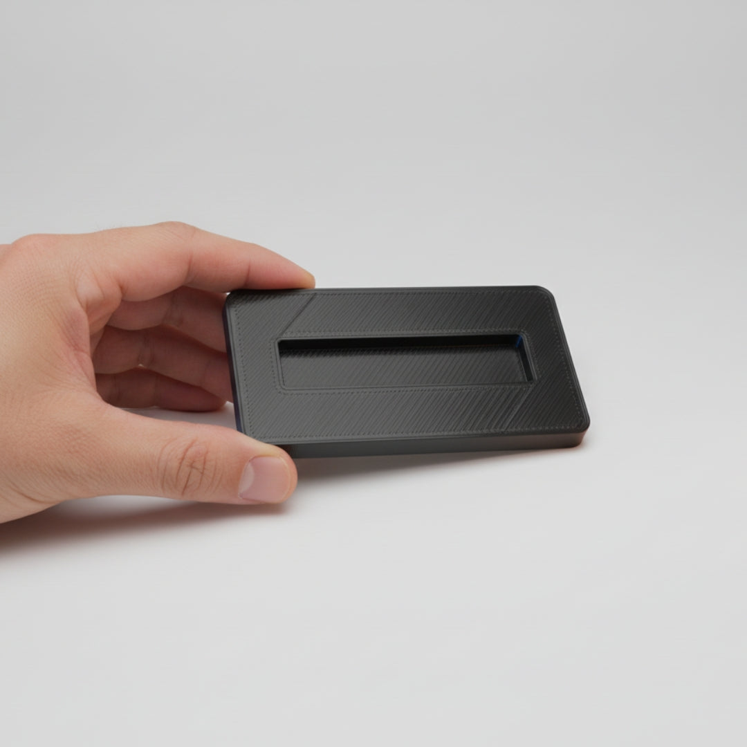 A sleek display base designed specifically for your One Tap Miner. This minimalist stand keeps your device upright and secure while enhancing its look on any desk or shelf.
